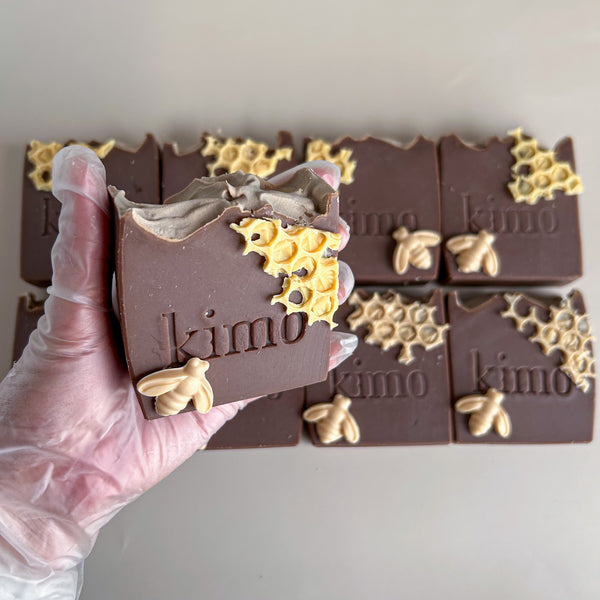 Termes INCI saponifiés: Sodium olivate, sodium cocoate, sodium palmate, sodium avocadate, sodium shea butterate, sodium castorate, cera alba , aqua, honey, avena sativa, fragrance.